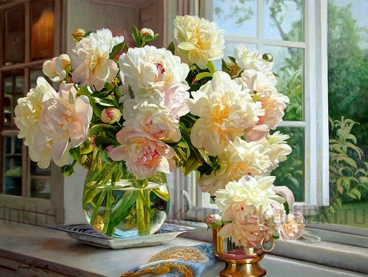 Картина по номерам «Ваза с букетом белых пионов у окна» размером 40x50 см см. купить по выгодной цене 597 ₽ с доставкой по Москве и всей России.