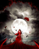 Картина по номерам «Женщина в красном на фоне полной луны» 30x40 см